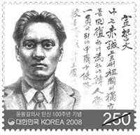 1908년 6월 21일 태어난 윤봉길의사는 1930년 나라와 겨레를 위해 중국으로 건너가 1932년 4월 29일 상해 훙커우공원에서 열린 일본의 전승기념 축하식에서 일본군의 수장들이 서 있던 단상을 향해 폭탄을 던졌다. 현장에서 체포된 윤봉길의사는 1932년 12월 19일 25세의 짧은 나이에 일본의 가나자와시 교외에서 총살형을 당했다. 다음 우표 발행은 ‘보통우표(250원권)’ 1종으로 6월 30일 나온다.