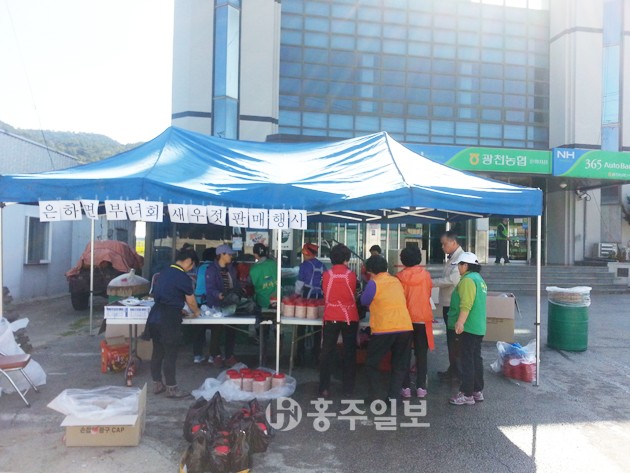 은하면 새마을부녀회(회장 박정순)는 어려운 이웃돕기 기금 마련을 위한 새우젓 판매행사를 지난 6일 광천농협 은하지점 앞에서 개최했다.<사진>