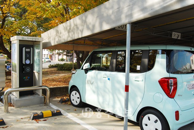 관용차량으로 보급된 전기자동차가 ‘주차장 붙박이’로 전락했다. 주행거리는 잘해야 100㎞ 안팎에 불과한데다 충전소도 홍성에는 군청 밖에 없어 홍성읍을 벗어나기 힘들기 때문이다. 홍성군은 지난 2012년 10월말 4500만원(국비 1500만원, 군비 3000만원)과 충전소 설치비 800여만원(전액 국비)을 투입해 K사의 4인승 경형 전기자동차 1대를 도입했다. 이 전기자동차는 16.4kw의 리튬이온 배터리와 50kw의 모터를 장착하고 있으며 1회 충전으로 139㎞를 운행할 수 있다. 완충 시간은 6시간이다. 전기자동차는 배차요청에 따라 지원하는 방식으로 운영 중이나 최대 운행거리의 한계로 실제 활용도는 극히 미미한 것으로 나타났다. 지난 1일 기준 전기자동차의 총 운행거리는 1만5123㎞로 연간 평균주행거리가 5000km 수준에 불과한 것으로 나타났다.