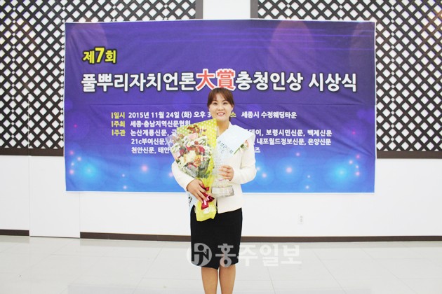 지난달 24일 세종·충남지역신문협회가 선정, 시상하는 2015 풀뿌리자치언론대상충청인상 시상식이 열렸다. 홍성군의회 최선경 의원은 이날 기초의원부문에서 대상을 수상했다. 최 의원을 만나 수상 소감을 들어봤다.