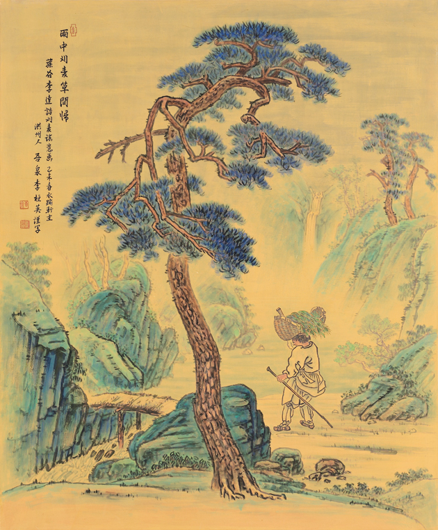 화면 전면 중앙에 압도하듯 서있는 노송은 시인 이달을 상징한다. 그는 보리를 베어 머리에 이고가는 젊은 아낙을 보호하듯 굽어본다. 다리 아래로 쏟아저 내리는 계곡물에는 빗소리와 멀리 숲속 초가에서 엄마를 기다리며 울고 있는 아이들의 울음이 담겨 있다. 꽉찬 화면의 계곡과 숲은 젊은 아낙의 현실이다. 왼쪽 상단 여백에 아낙의 집한채가 있음을 암시한다. 그리고 청보리를 담은 머리 위 바구니 속에 날을 숨긴 낫 자루가 빼꼼하다. 예맥요 시의화의 포인트다.
