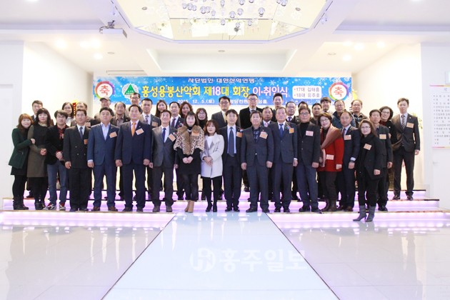 홍성용봉산악회(회장 유주호)는 지난 5일 청담웨딩홀에서 120여 명의 회원이 참석한 가운데 제18대 회장 이·취임식 행사를 가졌다. <사진>