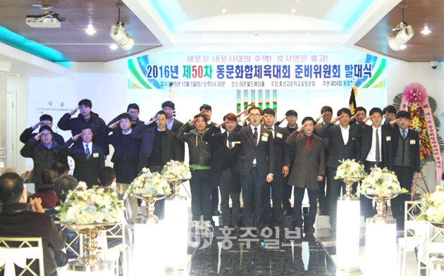 홍성고등학교총동문회(회장 강치구)는 지난 5일 마온월드웨딩홀에서 제50차 동문화합체육대회 발대식을 가졌다. 이날 행사에는 김석환 홍성군수를 비롯해 이관호 용봉장학회 이사장, 정호영 교장 등이 참석했다. 이번 발대식은 제50차 홍성고 동문화합 체육대회를 성공적으로 치르기 위해 선·후배 동문들에게 준비과정에 대해 보고하고 임무를 분담하기 위해 마련됐다.