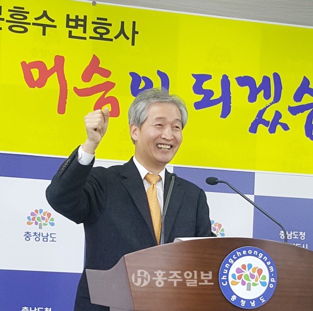 예산출신 문흥수(58) 법무법인 민우 대표 변호사가 내년 20대 총선 출마를 공식 선언했다. 4. 13총선 예비후보 등록이 시작된 지난 15일 문 변호사는 예비후보 등록을 마친 뒤 충남도청에서 기자회견을 갖고 ‘섬기는 사람, 머슴이 되겠다’며 출마의 변을 밝혔다.