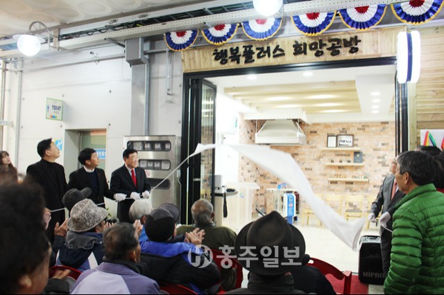 홍성군은 지난 11일 홍성전통시장에서 마을공방육성사업인 ‘행복+희망공방’ 준공 및 현판식을 가졌다.<사진>