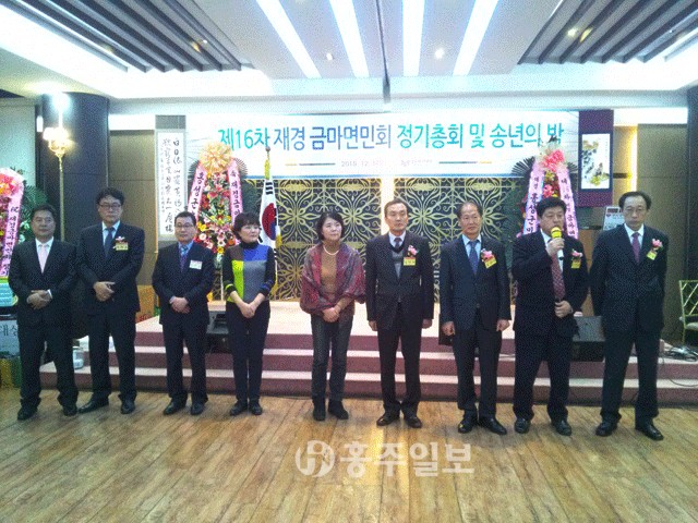재경금마면민회(회장 주진오) 제16차 정기총회 및 송년의 밤 행사가 지난 5일 서울 엘루체 웨딩 컨벤션 홀에서 회원 400여 명이 참석한 가운데 진행됐다.<사진>