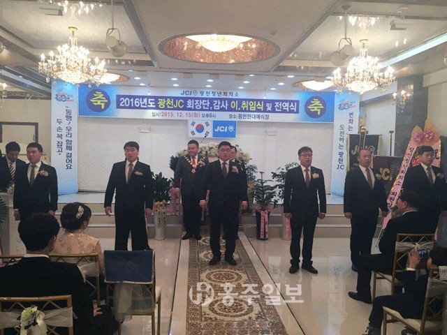 광천청년회의소(회장 박성환)는 지난 15일 광천 현대예식장에서 ‘2016년도 광천JC 회장단·감사 이취임식 및 전역식’을 가졌다.<사진>