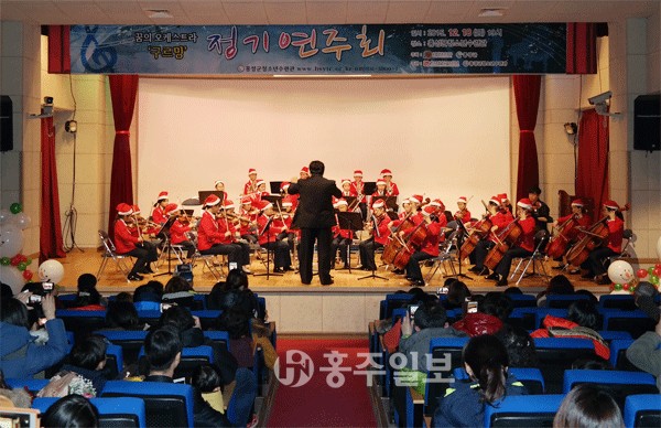 홍성군청소년수련관 꿈의 오케스트라 ‘구르밍’의 첫 연주회가 지난 18일 청소년수련관 예술전당에서 개최돼 큰 호응을 얻었다.<사진>