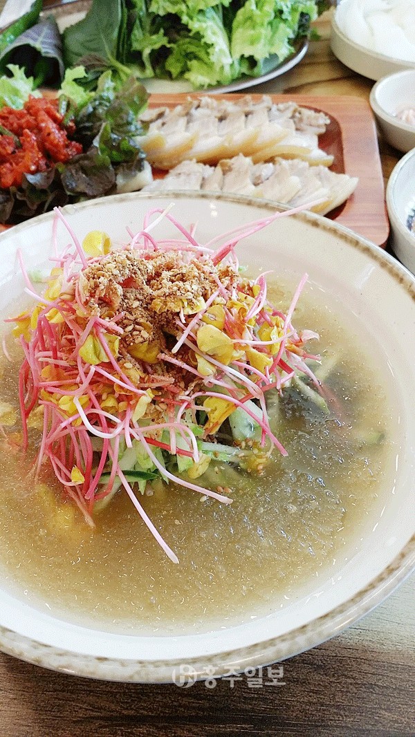 □가격 : △물막국수 6000원 △비빔막국수 6500원 △물곱빼기막국수 7000원 △비빔곱빼기막국수 7500원 △메밀왕만두(5개) 5000원 △수육 반접시(1~2인분) 1만원 △수육 한접시 1만5000원 △메밀칼국수전골(동절기 메뉴·2인이상 주문가능) 6000원(1인분).