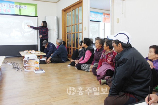 【홍동】 홍동면 산양마을은 지난달 30일 마을회관에서 군 관계자 및 마을주민 30여 명이 참석한 가운데 산양 창조적마을만들기(종합개발)사업 2차 주민공청회를 가졌다.