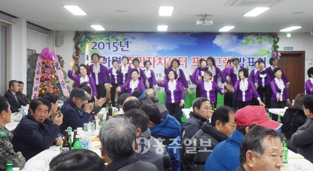 【은하】 은하면 주민자치위원회는 지난달 28일 오후 면사무소 대회의실에서 ‘은하면주민자치센터 프로그램 발표회’를 개최했다.<사진> 이날 발표회에서 수강생들은 주민, 기관 단체장 등 200여명이 참석한 가운데 그동안 갈고 닦은 실력을 맘껏 발휘했다. 대율리 난타 팀의 초청공연을 시작으로 댄스스포츠, 노래, 농악 등 다채로운 공연이 펼쳐졌다. 또 이번 행사에 앞서 은하면 주민(박영규 대판마을이장 50만원, 최준규 백인마을이장 30만원), 기업(<주>삼능 정덕조 회장 100만원), 기관․단체(덕실양돈영농조합법인 100만원, 체육진흥회 50만원)등에서 330만원을 모아 ‘홍성사랑장학회 기금 전달식’을 했다.