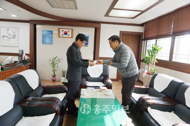 홍성군 수영선수들을 위한 격려금이 전달 돼 훈훈함을 더하고 있다. 홍성군수영연합회(회장 박문수)는 지난 8일 홍성교육지원청(교육장 조인복) 교육장실에서 2016학년도 홍성군 수영선수를 위한 격려금 전달식을 가졌다. 수영연합회 회장을 비롯한 임원 3명과 홍성교육지원청 관계자가 참석한 가운데 전달된 이번 장학금은 새해를 맞아 새롭게 구성된 관내 수영선수들의 훈련지원을 위해 전달된 것이다.