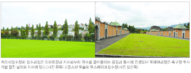 취리히의 정수장은 오존과 박테리아 등의 유익한 미생물을 이용하기도 하지만 결국은 모래와 자갈, 공기라는 자연에서 얻은 재료만으로 깨끗한 물을 만들어내고 있었다. 최고 수질의 스위스 수돗물이 만들어지는 이유를 우리가 주목해야 할 대목이다.