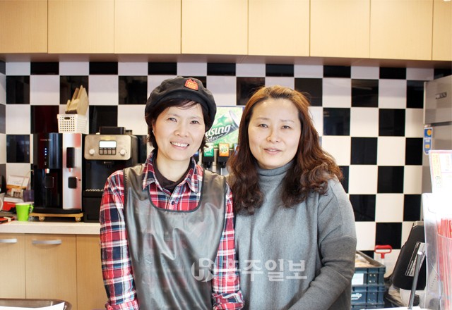 맘스터치 법원점 이순민(49·사진 오른쪽) 대표는 ‘햄버거 기부천사’다. 노인복지관, 장애인복지관, 군부대, 경찰서, 소방서, 고아원 등 햄버거가 필요한 곳이면 어디든 찾아간다. 이 대표는 지난 2014년 2월에 문을 연 맘스터치에서 꾸준한 햄버거 기부로 회자되고 있다. 이 대표가 한 달에 기부하는 햄버거는 300개 정도다. 이 대표는 인터뷰 중 테이블에 놓인 홍주일보 416호에 실린 오관지구대 곽민경 순경의 소아암 환자를 위한 머리카락 기부 기사를 보더니 햄버거를 들고 당장 오관지구대에 가야겠다고 했다.