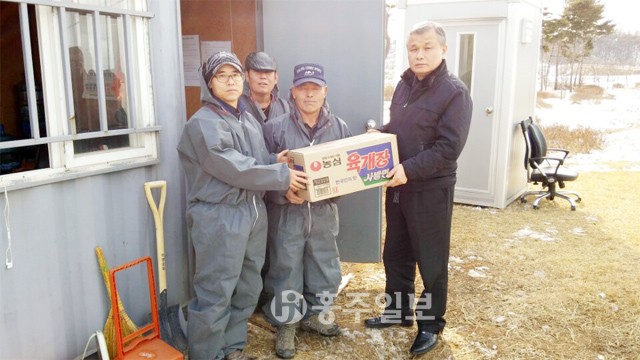 【은하】 이흥종 면장은 지난 22일 목현리 구제역 거점소독초소를 방문해 추운 날씨 속에서 구제역 유입차단을 위해 방역활동에 전념하고 있는 초소 근무자들을 격려했다. 이날 이 면장은 전북 김제시에서 구제역이 발생함에 따라 구제역 유입 차단을 위해 설치한 거점소독초소 근무자들을 격려하고자 50만원 상당의 부식을 전달하고 방역수칙준수 및 동절기 소독방법과 소독시설 운영 요령 등을 설명했다.