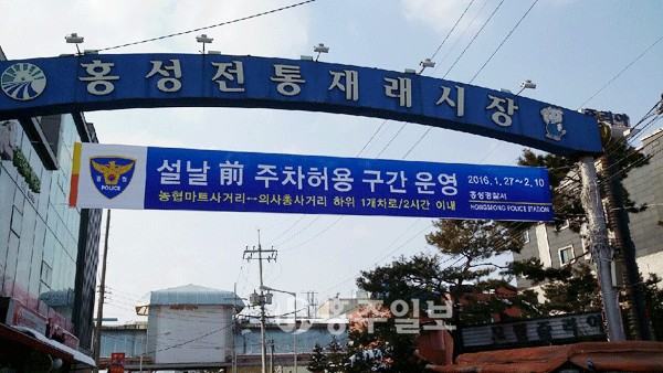 【홍성】설 명절을 맞아 한시적으로 주차 확대 및 단속이 완화된다. 홍성경찰서는 명절을 맞아 오는 27 일부터 다음달 10일까지 홍성재래시장 주변 도로(농협 하나로마트 사거리∼의사총사거리)에 대해 한 시적으로 주차를 허용한다.<사진>