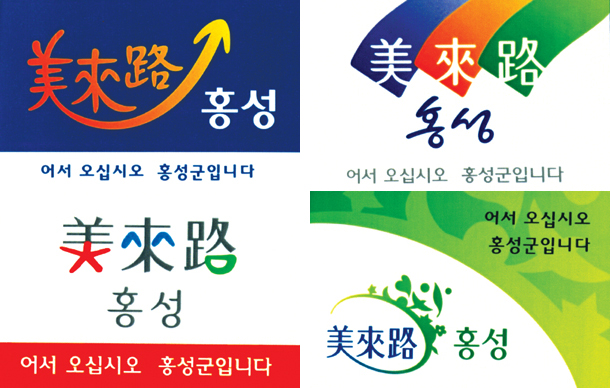 美來路 홍성의 3차 후보는 Leading the Tomorrow. 상승하고 뻗어나가는 화살표의 획을 모티브로 충남을 넘어 미래의 핵심도시로 나아가고자 하는 미래비전을 역동감 있게 표현했다. 4차 후보는 Natural Wave. 역동적인 녹색도시로 새로운 물결을 일으키고자 하는 홍성의 의지를 표현한 것이라고 밝혔다.