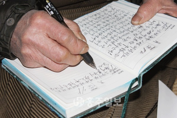 “홍성 법원에 방청을 하러 많이 갔었지. 재판과정을 지켜보다 보면 하지도 않은 일을 했다고 누명을 쓰는 사람들이 있더라고. 그런 상황에서 자신의 결백을 주장하기 위해서는 증거가 필요해. 그런데 일 기장을 보여주면 그것이 증거가 되는 거야. 그걸 깨닫고 나서부터 하루도 빠짐없이 매일매일을 기록해 왔지.”