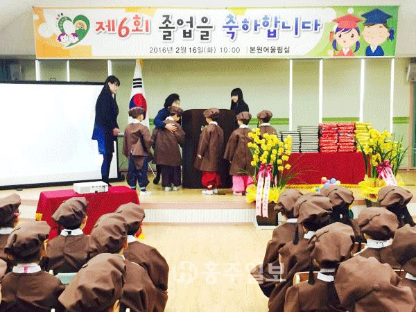 조양유치원(원장 박혜자)은 지난 16일 원내 어울림실에서 제6회 졸업식을 가졌다. 한복을 곱게 차려입은 행복1, 2반 53명의 졸업생들은 졸업증서와 누리과정 영역별 유아 각 개인의 특성에 맞게 1인 1상과 유치원 생활의 추억을 담은 앨범을 받았다. 또 졸업식에 함께 참석한 부모님들께 감사의 마음을 담아 큰절을 한 후 자리에 앉았다.