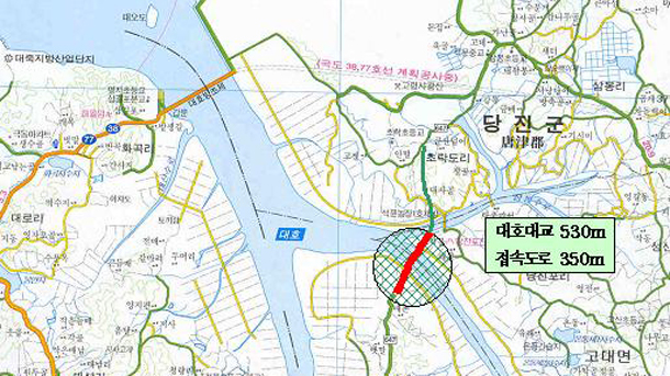 양 지역은 과거 바다였으나 대호방조제 축조로 생긴 대호만으로 인해 교통이 단절되어 주민들을 배를 타고 서로 왕래하던지 아니면 먼 거리를 돌아 다니는 등 통행에 불편을 겪어 왔었다.
