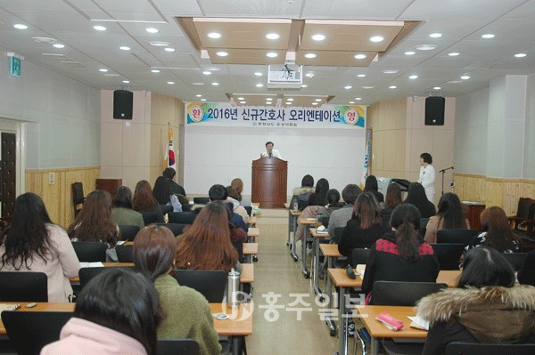 홍성의료원이 지난 22일부터 24일까지 3일간 대회의실에서 30여명의 2016년도 신규간호사를 대상으로 오리엔테이션을 실시했다. 이번 오리엔테이션은 신규간호사의 임상적응을 돕기 위해 실시된 것으로 △병원현황 △병원행정 절차 및 후생복지 △환자권리와 책임 △간호와 직장윤리로 구성된 의료윤리 △안전관리 △감염관리 △의료의 질 향상 △친절교육 및 의사소통술 등 간호실무와 업무에 필요한 교육 프로그램으로 진행됐다.
