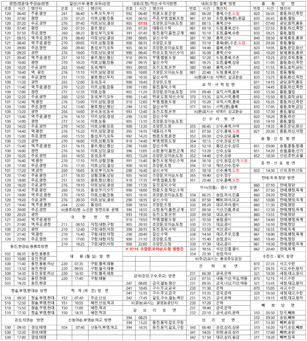 홍주여객자동차㈜ 농어촌버스 운행 시간표(홍성터미널)