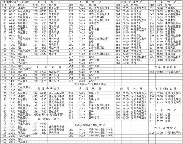 홍주여객자동차㈜ 농어촌버스 운행 시간표(광천터미널)