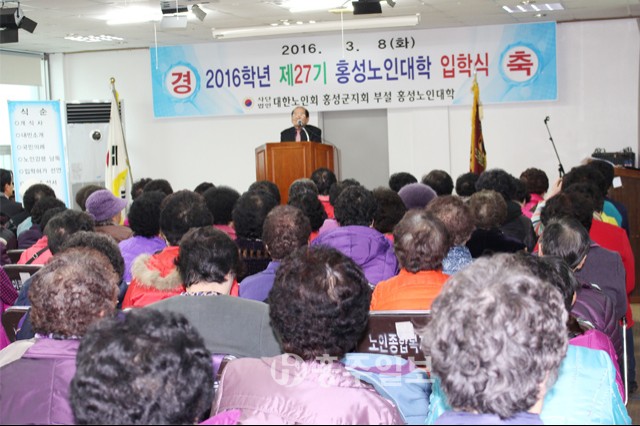 대한노인회 홍성군지회(지회장 이범화)는 지난 8일 노인종합복지관 대강당에서 27기 홍성노인대학입학식을 진행했다. 입학식행사에 이범화 지회장, 이병칠 홍성노인대학장, 김석환 군수, 오배근 도의원, 이종화 도의원, 이무형 민주평화통일자문회의 홍성군협의회장, 홍성군지회 명예회장과 각 읍면분회장 및 입학생 267명 등 총 300명이 참석했다. 개식사를 시작으로 국민의례, 노인강령 낭독, 입학허가 선언, 입학생 선서 순으로 식이 진행됐다.