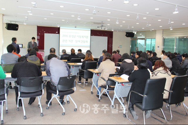 홍성군자원봉사센터는 지난 3일 아이쿱센터 2층 체험실에서 이동복지관 관련 간담회를 개최했다. 간담회에는 이동춘 자원봉사센터장을 비롯한 이동복지관 참여기관 담당자 및 단체 대표자와 11개 읍면 담당주무관 포함 45명이 참석했다. ‘행복 싣고 찾아가는 이동복지관’ 운영과 관련해 참여 기관, 단체와의 의견 교류 및 주요 현안사항에 논의해 지역사회자원의 네트워크체계를 구축하기 위한 이번 간담회는 참석자 소개와 2016년 이동복지관 사업 안내, 운영 관련 논의가 이어졌다.
