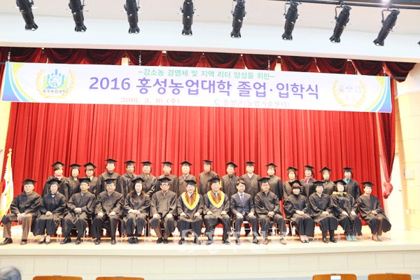 홍성군은 지난 16일 2016년도 홍성농업대학 졸업 및 입학식을 개최했다. 군은 그동안 농업대학 운영을 통해 품목별로 체계적인 농업인 중 장기 교육을 실시하는 한편 전문 농업경영인 육성 및 지역농업 특화 발전을 도모해왔다. 2005년 출범 이래 2014년까지 총 761명의 수료생을 배출했다. 이번 졸업·입학식에는 농업대학 학장인 김석환 홍성군수를 비롯해 부학장인 윤길선 농업기술센터소장 등 이 참석해 95명의 제11기 졸업생과 137명의 제12기 입학생에게 아낌없는 축하와 격려를 보냈다.