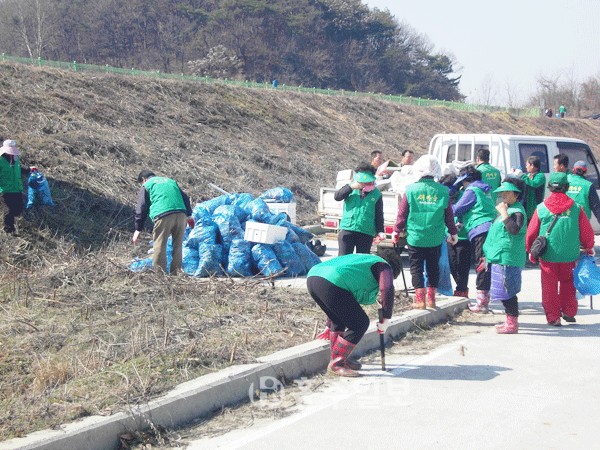 금마면 새마을남녀지도자(협의회장 복진백) 회원 50여명은 지난 15일 국토대청소운동을 실시했다.<사진> 이번 행사는 겨우내 쌓였던 각종 쓰레기를 치워 깨끗한 환경을 조성하기 위한 것으로, 면내 홍양저수지 주변에서 수거된 쓰레기 5톤 분량을 처리했다.