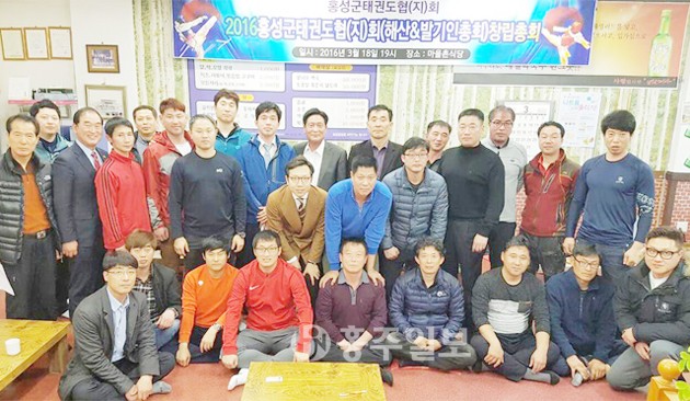 홍성군태권도협회(회장 조종천)는 지난 18일 마을촌식당에서 ‘2016 홍성군태권도협회 창립총회’를 열었다. 이날 총회에는 재적 대의원 15명 중 14명이 참석해 만장일치로 조종천 회장을 추대했다.