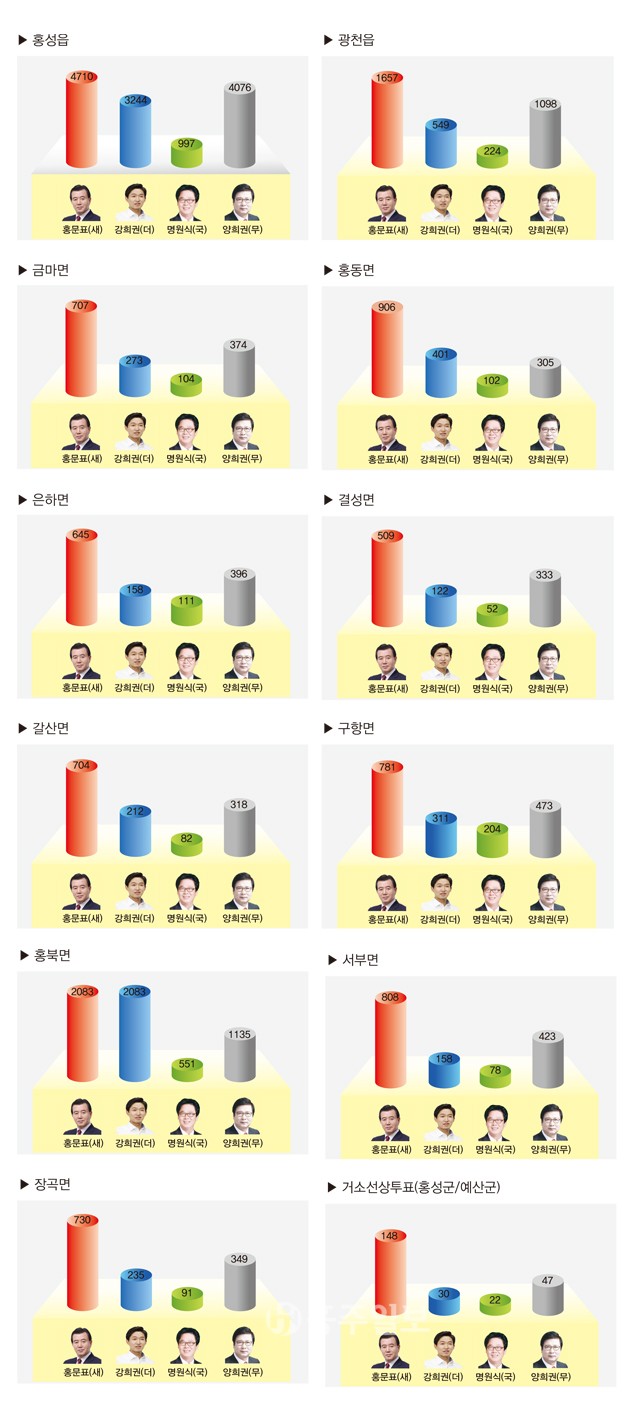 4·13총선 홍성군 읍면별 후보자 득표 현황