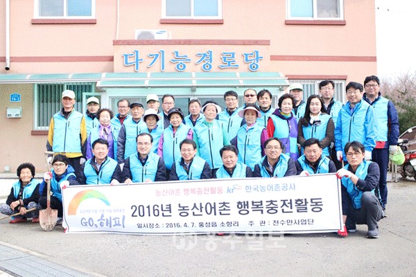 【홍성】한국농어촌공사 천수만사업단(단장 한광석)은 지난 7일 홍성읍 소향리 1구 마을회관을 찾아 ‘식목일행사 및 함께 가꾸는 농촌운동’을 실시했다.<사진>