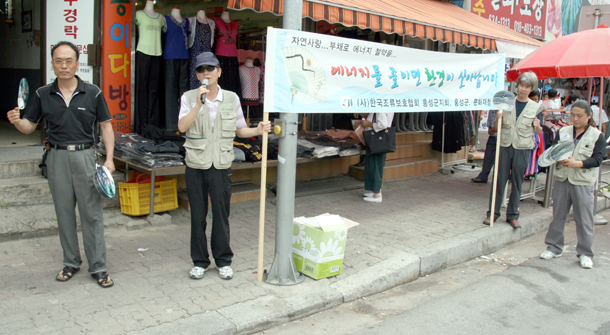 (사)한국조류보호협회 충남홍성군지회 이대형(대우상회 대표) 고문은 “고유가로 경제가 어려운 가운데 날이 더워지면서 에어컨 사용량이 많이 늘어나는 등 에너지 절약이 절실한 때”라며 “부채를 사용하는 것 같이 작은 실천으로 에너지를 절약할 수 있다. 또한 이것이 자연을 보호하고 환경을 지킬 수 있는 밑거름이 될 것이다”고 캠페인 취지를 설명했다.