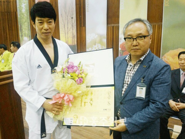 홍성경희대태권도 사범인 송이섭 관장은 지난달 국기원 고단자 승단시험에 합격해 태권도 공인 8단으로 승단하는 영예를 안았다. 송이섭 관장은 지난달 열린 승단시험 중 충남 심사대회에서 응심자 1600여 명과 학부모, 임원 등 2500여 명이 지켜보는 가운데 충남태권도협회 김영근 전무로부터 8단증을 수여 받았다. 직접 도복을 입고 수련생의 심신 수련을 위해 땀 흘리고 있는 송 관장 은 “이번 승단을 계기로 홍성의 태권도 발전을 위해 더욱 최선을 다해나가겠다”는 각오를 밝혔다.
