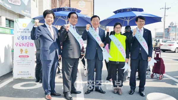홍성농협(조합장 정해명) 여성농업인센터와 홍성농협 농가주부모임(회장 전복배)은 우리농산물 소비촉진을 위해 지난 26일 홍성농협 하나로마트 입구에서 김석환 군수, 이범구 농협홍성 군지부장이 참석한 가운데 지역주민 300여명을 대상으로 무료 시음회를 개최했다.<사진>