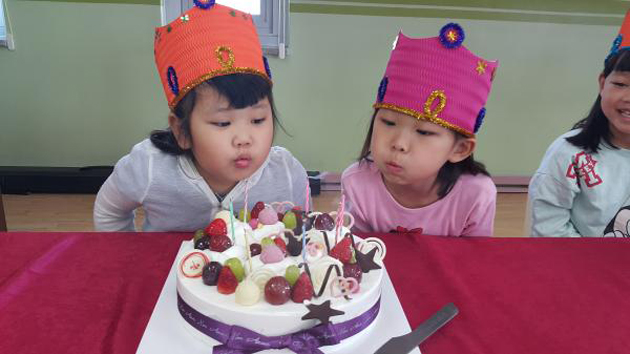 조양유치원(원장 박혜자)은 지난 2일 유치원 어울림실에서 5월 생일축하를 가졌다. 이날 생일축하 시간에는 따뜻한 봄에 태어난 5월 조양유치원 꿈동이들 13명의 생일잔치가 함께 이뤄졌다. 생일을 맞은 어린이들은 왕관을 쓰고 가운데로 입장해 유치원 친구들의 축하 속에 케이크 위 촛불을 끄고, 친구와 교사들로부터 생일축하 노래로 축하를 받았다.