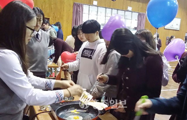 홍성장애인부모회는 20일 장애인의 날을 맞아 홍성여자고등학교에서 장애인식개선프로그램 ‘친구니까 괜찮아!!!’를 진행했다. 행사에는 홍성여자고등학교 학생 550명이 참여해 장애인에 대한 벽을 허무는 뜻 깊은 시간을 가졌다. 특히 안대를 끼고 친구의 이야기에 따라 계란후라이를 만들어 보는 시각장애인 이해하기 체험은 학생들의 큰 호응을 얻었다.