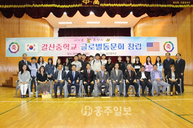글로벌동문회는 미국교류활동에 참가한 학생 및 동문간의 글로벌 정보 공유 및 우정과 단합을 통한 글로벌 인재 역량을 갖추기 위해 지난 2014년 미국 국제교류에 참여한 학생 2명을 비롯해 2015년 6명, 2016년 7명 등 총 15명으로 조직됐으며, 회장은 이영주(갈산고 2), 부회장은 이예찬(홍성고 2), 총무는 오은주(갈산고 1) 학생이 각각 선출됐다.