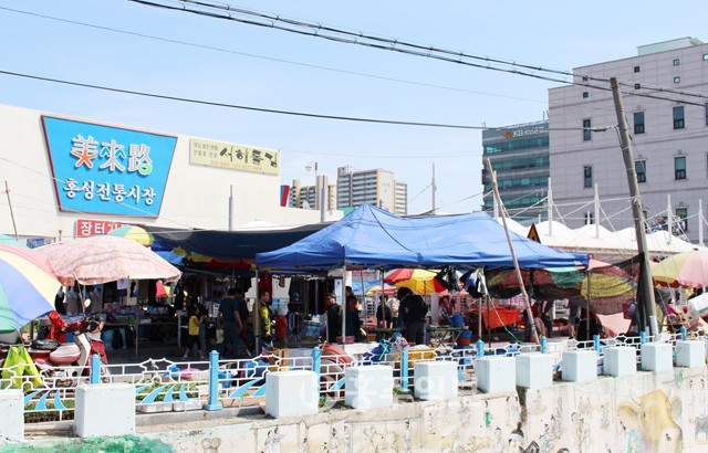 홍성오일장은 현재 읍사무소 뒤편에 위치했는데 해방 직후 지금 자리로 옮겨 시장을 열고 있다. 홍성 오일장은 매달 끝자리 1일과 6일 열린다. 사라져가는 전통시장이 하나의 관광상품이 되어 주말이면 관광객이 찾아온다. 지난 1일 전통시장을 찾은 관광팀은 대전에서 출발해 조류박물관, 승마체험장, 갯벌체험장을 둘러보고 시장을 찾았다. 안현정 씨는 “전통시장이 많이 사라졌는데 오늘 ‘뻥이요’도 보고 철물골목도 누비며 우리전통문화를 되새겨볼 수 있어 재미있었고 특히 아이들도 즐거워했습니다”라고 말했다.