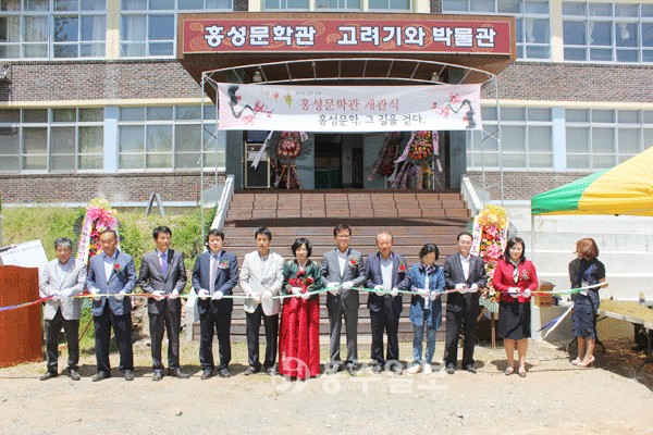 홍성문학관(관장 김도연) 개관식이 지난 14일 하광학 부군수와 황성순 장곡면장, 홍성문인협회 회원 및 관계자, 지역민 등이 참석한 가운데 개최됐다. 장곡면에 위치한 구 양성중학교 터에 개관한 홍성문학관은 학교건물 중앙을 중심으로 좌측은 홍성문학관, 우측은 고려기와 박물관이 자리하고 있다. 이날 개관식에는 예산국악협회 회원들의 풍물 연주와 수필협회 감사의 색소폰 연주 등 사전공연과 개관식, 점심식사 등의 순서로 진행됐다.