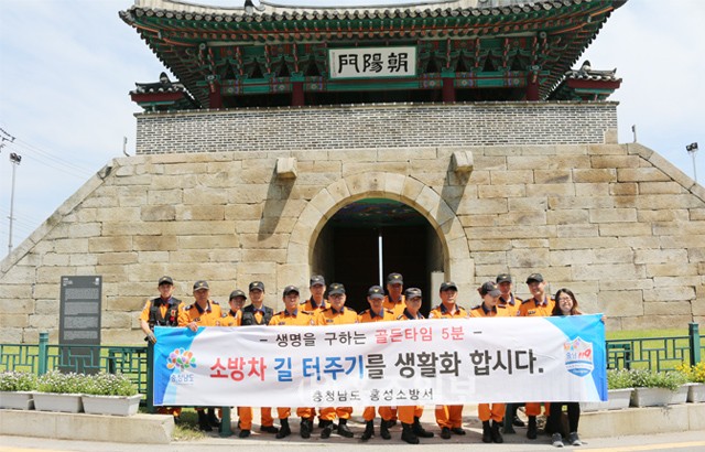 홍성소방서는 작년부터 한 달에 한번 조양문에서 홍성터미널까지 가장 정체가 심한 오일장날에 캠페인을 벌이고 있다. 군민들의 소방차 길 터주기 참여를 유도하고 소방 활동에 장애가 되는 요인들을 제거해 신속한 재난 초기 대응능력을 향상시킨다는 계획이다.