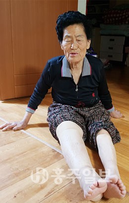 ▲ 자궁암 수술 후유증으로 오른쪽 다리가 왼쪽 다리보다 두배가 굵은 이준선 할머니.