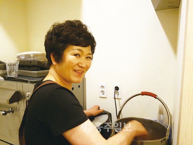 ▲ 홍성농협 지하에 위치한 행복나눔카페에서 이미자 주부대학회장이 머핀에 들어갈 딸기쨈을 직접 만들고 있다. 카페에서는 저렴한 가격에 신선한 주스와 꼬마김밥 등을 판매한다. 저작권자 © 홍주일보 무단전재 및 재배포 금지 홍주일보 다른기사 보기 페이스북 카카오톡 URL복사 기사공유하기