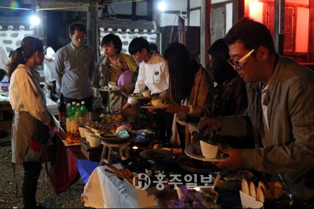 이날 행사에서 참가자들은 음식 재료로 쓰이는 지역 농산물에 대한 설명을 듣고 직접 부침개와 카나페 등을 만들어 보고 맛을 보면서 즐기는 시간을 가졌다. 이어 참가자들은 너른 고택 마당에서 오카리나 공연을 감상하고, 저마다 자유롭게 모여 맛있는 음식을 먹으며 편안하게 대화를 나누는 소셜 다이닝을 즐겼다. 홍성 한우 스테이크 샐러드, 서해안 새우 카수엘라, 유기농 오리쌀 조개 건강밥, 홍성 쌀막걸리, 홍성 블루베리 쿠키 등 주메뉴와 사이드, 디저트, 음료 등은 유기농 쌀과 홍성한우, 천수만 해산물과 각종 과일과 야채, 유기농 치즈와 요거트 등 홍성에서 생산되는 다양한 농수축산물을 활용해 개발됐다.