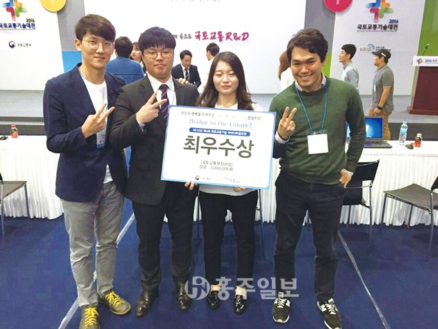▲ 한서대학교 항공교통물류학과 권필제, 이동규, 윤우식, 박혜현 등 4명의 학생들이 국토교통부가 주최한 제4회 국토교통기술대전에서 최우수상인 국토교통부장관상을 수상했다. 저작권자 © 홍주일보 무단전재 및 재배포 금지 홍주일보 다른기사 보기 페이스북 카카오톡 URL복사 기사공유하기