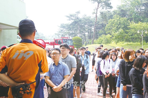 ▲ 청운대학교(총장 이상렬)는 지난달 25일 홍성캠퍼스 청운학사에서 교직원 및 재학생 150여명이 참여한 가운데 화재 시 행동요령을 익히는 화재대피 소방훈련을 실시했다. 저작권자 © 홍주일보 무단전재 및 재배포 금지 홍주일보 다른기사 보기 페이스북 카카오톡 URL복사 기사공유하기