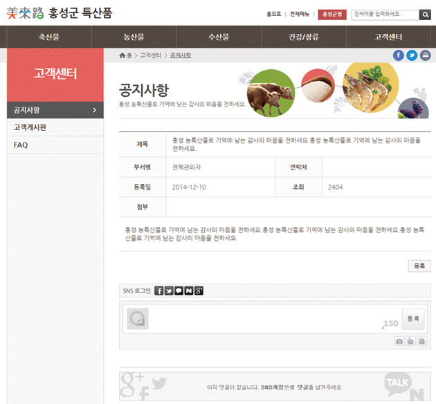 하지만 특산품 홈페이지 게시판은 전혀 활용되지 않고 있다. 공지사항의 경우 지난 2014년 게시된 1건이 전부이며, 내용조차 제대로 작성되어 있지 않다. 또한 소비자들이 직접 활용하는 고객게시판, FAQ 게시판에 단 한 건의 게시물도 작성되지 않는 등 전혀 관심도도 떨어져 유명무실하다는 지적이다.