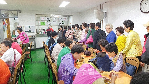 홍성군노인종합복지관(관장 동준스님)은 홍성읍에 위치한 태왕(사장 김덕문)의 후원을 받아 지난 10일 관내 경로 식당에서 복지관 이용 어르신 200명을 대상으로 짜장면을 대접했다. 이번 행사는 가정의 달 5월 어버이날을 맞아 지역 내 어르신들에게 효를 실천할 수 있는 마음으로 평소 어르신들이 좋아하는 짜장면을 제공했다. 특히 김덕문 사장은 오랜 경력으로 맛있는 짜장면을 만들어 정성을 다해 준비해 어르신들의 큰 호응을 얻었다.